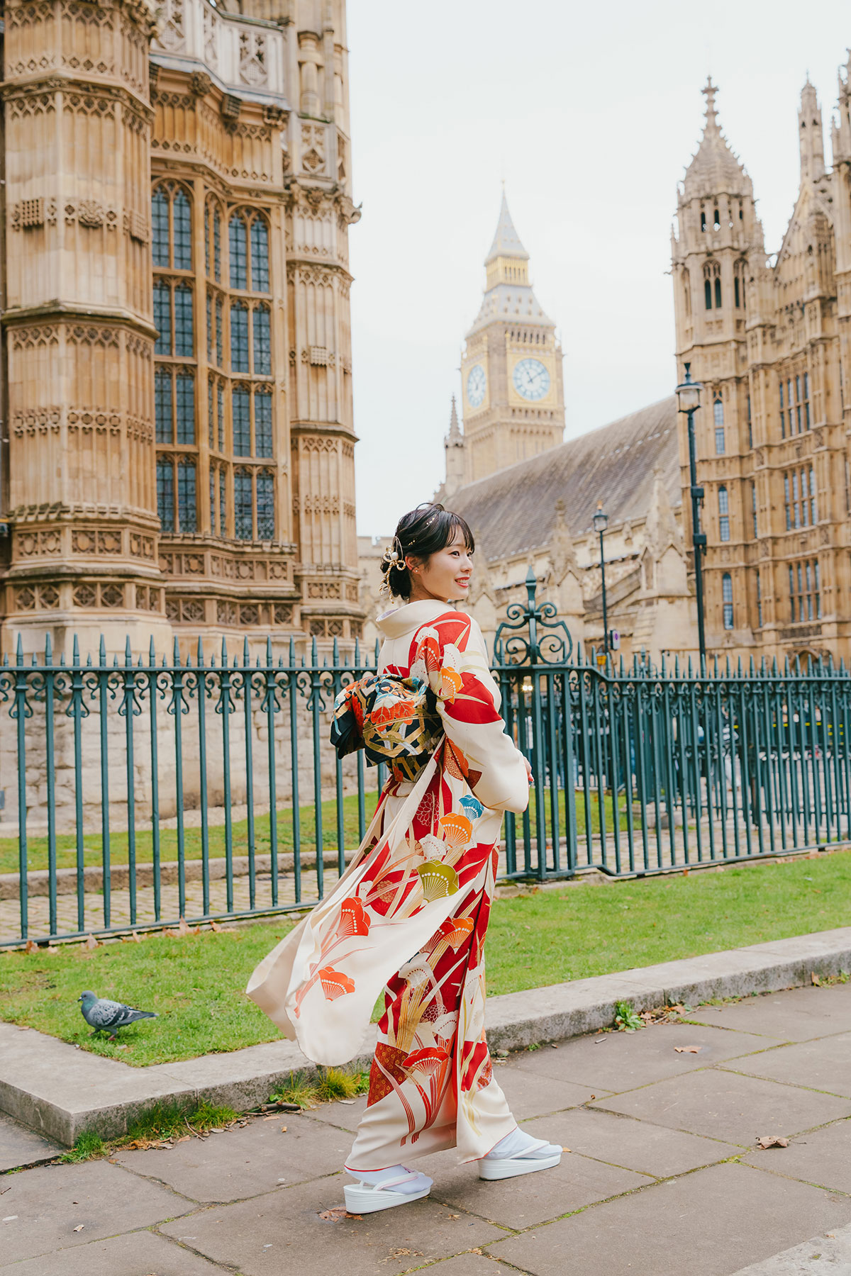 イギリスの美しいロケーションの中で、和装ならではの気品と華やかさを引き立てた一枚を撮影いたします。